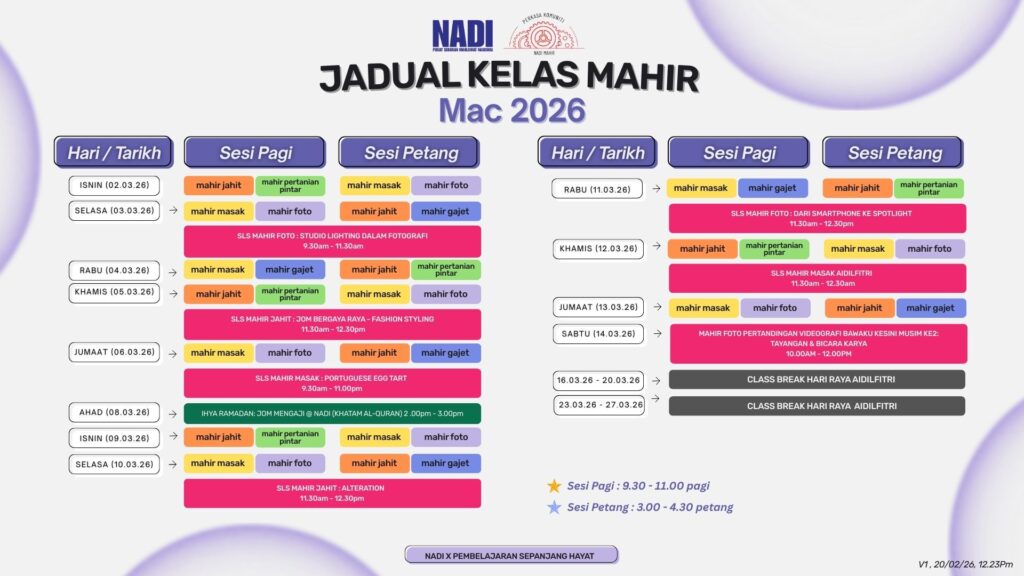 JADUAL KELAS MAHIR MAC 2026